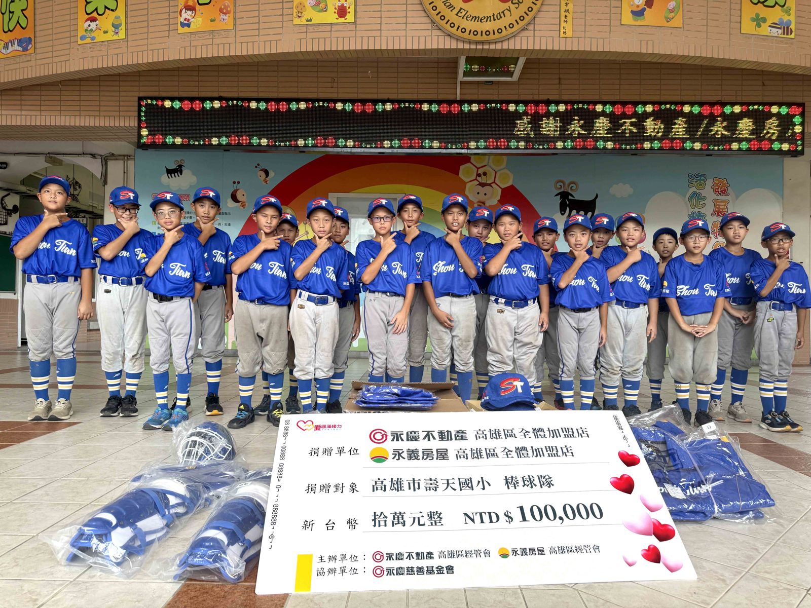 在6月19日的捐贈儀式上,永義房屋高雄區經管會創會會長黃俊宏表示,壽天國小棒球隊在6月初獲得「114年華南金控盃全國少棒錦標賽」亞軍,表現相當亮眼,是教練和球員共同努力的成果。目前使用的物資大多已老舊,這次贊助目的是為小球員製作練習球衣褲及冬季外套,同時補助外出比賽經費,減輕偏鄉孩子的家庭負擔,讓他們無憂無慮在賽場上勇敢追夢。未來我們將持續支持高雄國小國中的運動球隊,成為孩子在運動場上的後盾。
